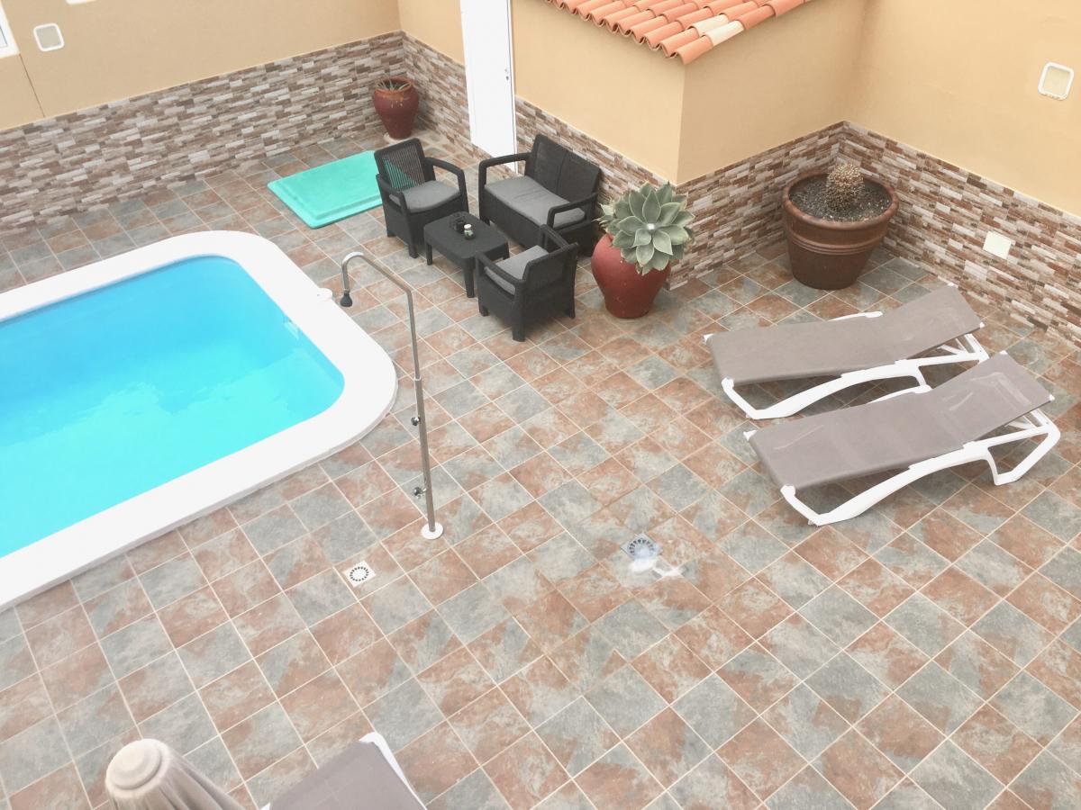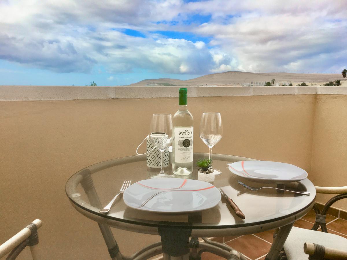 Diese Anlage heisst alle Gäste Willkommen, die passend zum gehobenen Wohnviertel vorwiegend Ruhe suchen. In diesem kleinen, feinen Penthouse geniessen Sie darüberhinaus einen wunderbaren Panoramablick. Die Terrasse lädt zum Frühstücken beim Sonnenaufgang ein und am ende Ines wunderschönen Straflagers zum gepflegten Sundowner. Die Restaurants und Supermärkte sind nicht allzu weit entfernt und können durchaus zu Fuss erreicht werden. Dennoch empfehlen wir allen Gästen einen Mietwagen, alleine schon um die vielen unterschiedlichen und spektakulären Strandabschnitte hier im Süden zu entdecken. Auch für erlebnisreiche Touren an die Westküste oder nach Punta Jandia und Cofete sowie in den Norden der Insel empfiehlt es sich immer, einen Mietwagen auf der Insel zu haben.