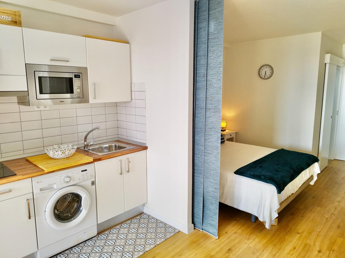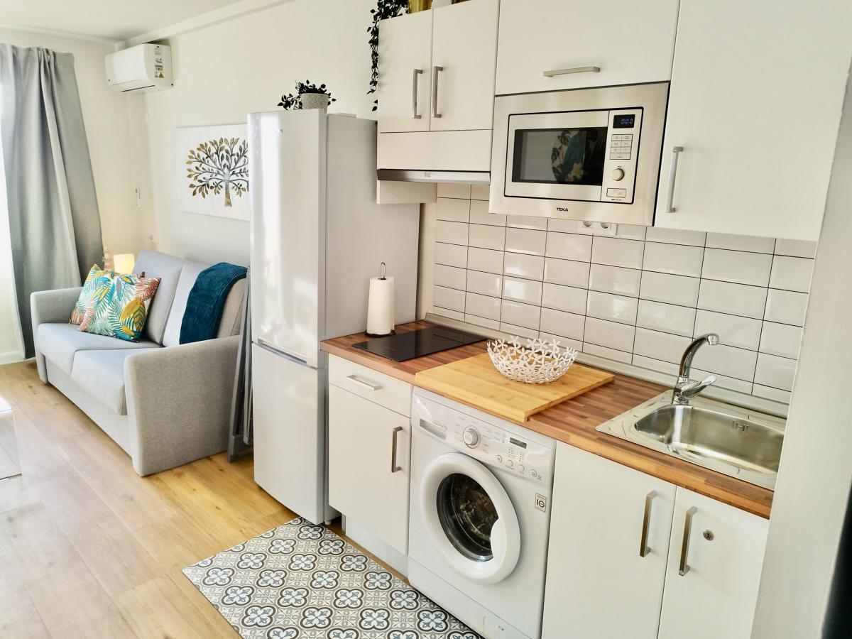 Das Appartement besteht aus Wohnschlafraum mit separatem Bad und hübscher Meerblick-Terrasse. Es ist mit einer Waschmaschine und Klimaanlage ausgestattet. Darüberhinaus verfügt es über SAT-TV.