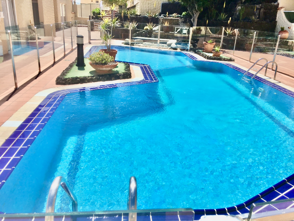 Dieses schöne Familien-Appartement in Costa Calma bietet 5 Personen viel Platz. Zum beliebten Traum-Sandstrand sind es vielleicht 200-300 Meter. Sie können quasi mit der Badehose direkt ins  Meer gehen, oder in den Gemeinschaftspool der sehr gepflegten Anlage.