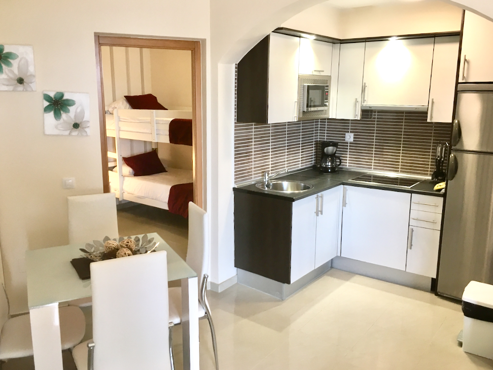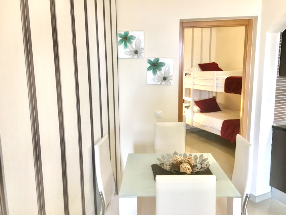 Das Appartement ist sehr geschmackvoll eingerichtet und bietet Ihnen 2 Schlafzimmer und einen großzügigen Wohn- und Essraum mit integrierter Küche sowie ein Duschbad. Alles ist hier qualitativ sehr gut ausgestattet. Eines der Schlafzimmer ist sehr groß und bietet ein Doppelbett, das kleinere Schlafzimmer verfügt über ein Hochbett.