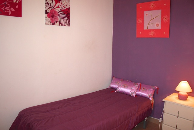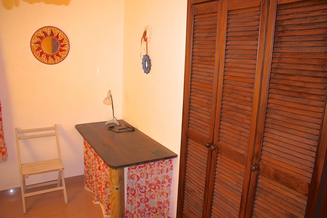 Die Wohnung verfügt über 2 Schlafzimmer – jeweils mit Einzelbett – und über einen weiteren Raum zum Relaxen und Chillen oder ebenfalls zum Schlafen, dank dem Sofabett. Das kleine Duschbad reicht völlig für zwei bis drei Gäste. Die beiden Schlafzimmer sind im übrigen zum Gartenbereich des Hauses gelegen.